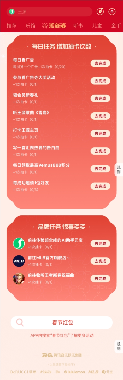 易游app TME联袂王源讲求开启春节红包行径,多款新年卡片与海量现款红包同步上线