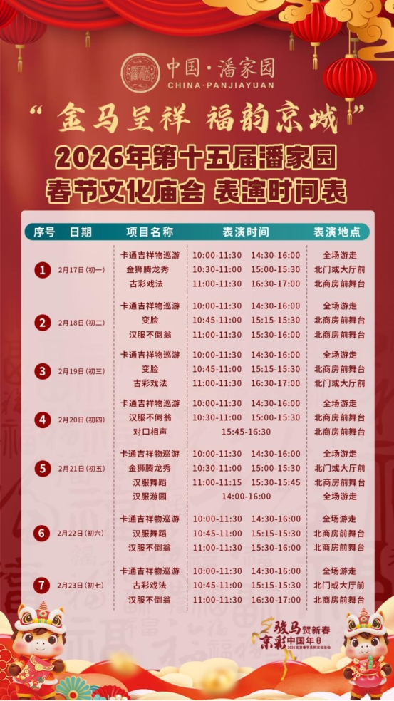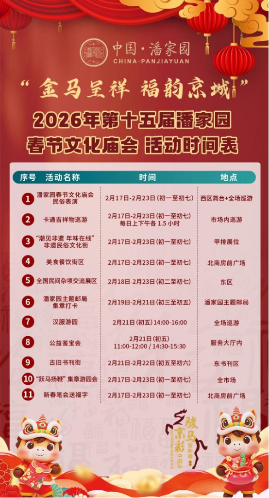 新春将至,年味渐浓。2026年2月17日至23日(正月月吉至初七)时间,潘家园变身“文化大不雅园”,以“金马呈祥 福韵京城”为主题的第十五届潘家园春节文化庙会及系列文化行径火热伸开。在这里,非遗本事活力四射,老字号好意思食普及味蕾,古书刊申报往昔,文玩藏友晒宝竞技……陈腐传统本事与新期间潮水元素深度会通,为市民搭客送上潘家园独到的鲜美年味!