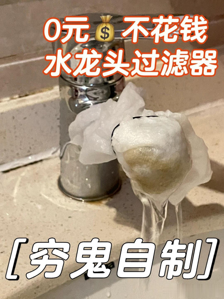 这个时候咱们不错用洗脸巾,把它绑在水龙头大概花洒上,这么就不错增多一层过滤了。 过一段技巧之后,你就会发现洗脸巾变得脏兮兮的,其实这王人是过滤出来的脏东西。有了这层过滤,咱们用水也会比之前安全一些。