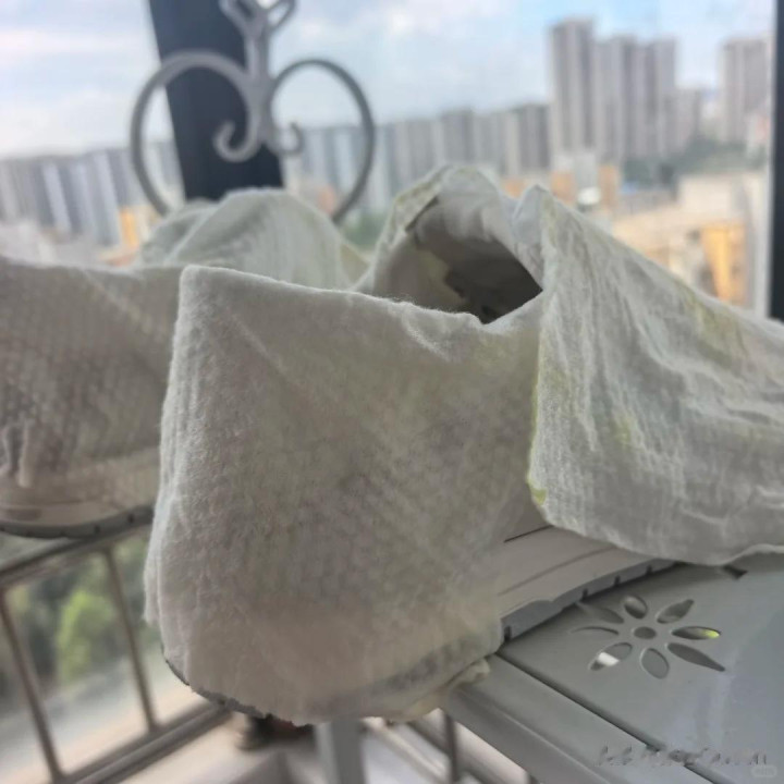 一次性洗脸巾,哪怕被鞋子浸湿了,亦然不错晾干之后反复使用的,而且它不像卫生纸包在鞋面上容易破,粘的鞋子到处王人是。 用洗脸巾包裹的鞋子在晾干之后雷同不错纯洁如初,人人不错学起来。
