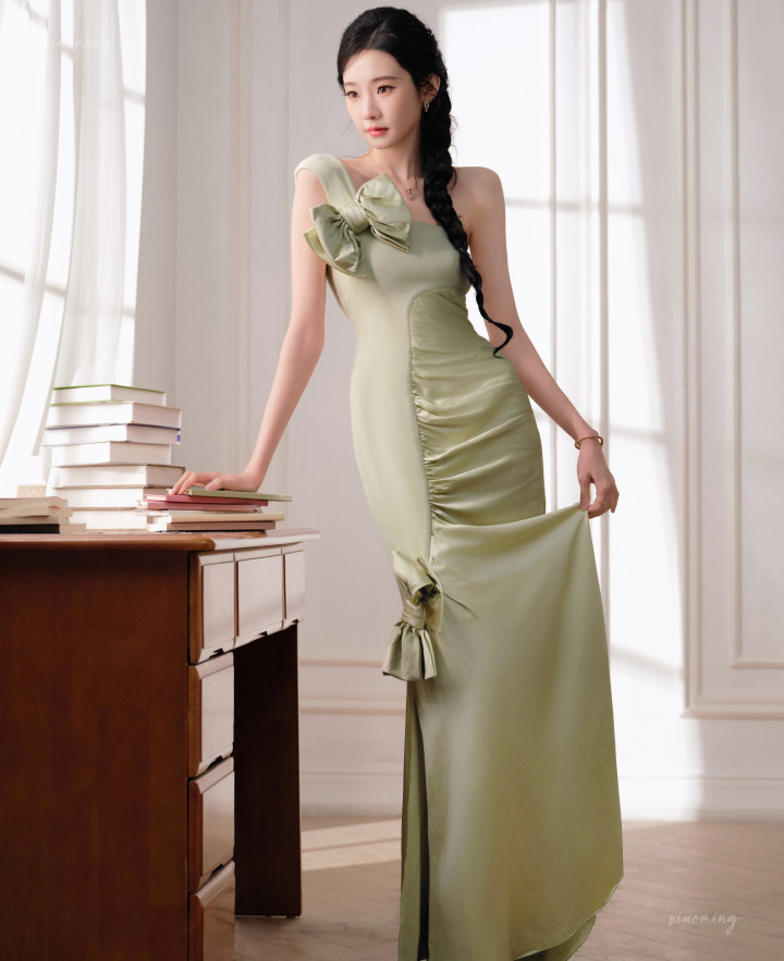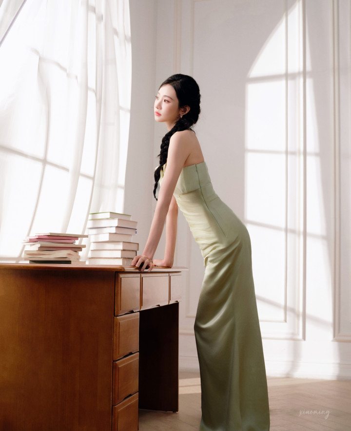 张艺凡这一拂一扬间,你说勾魂的是薄荷绿的风,依然轻扬的缎面裙角?
