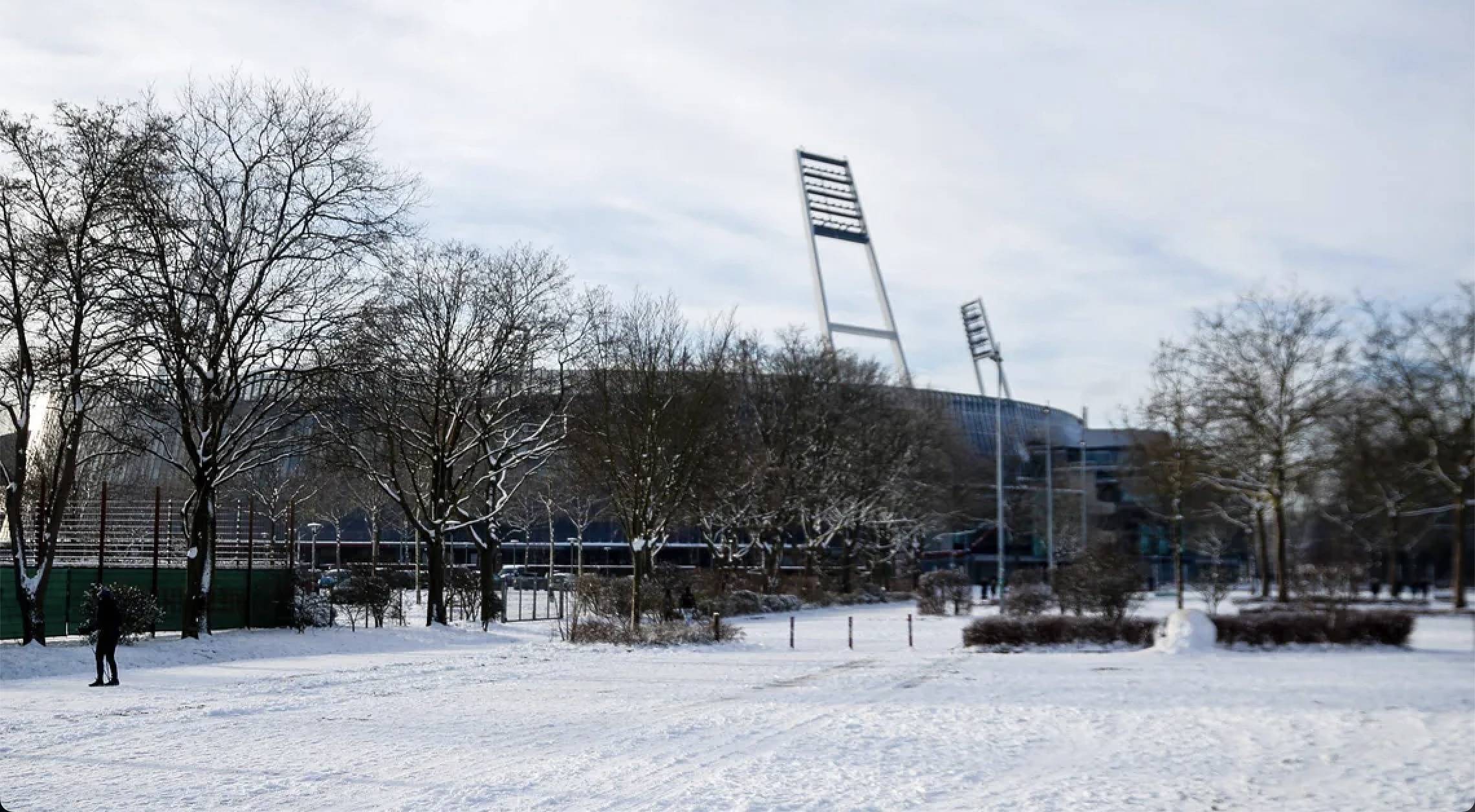 图为不来梅主场球场外的雪况。图片来自德甲官网