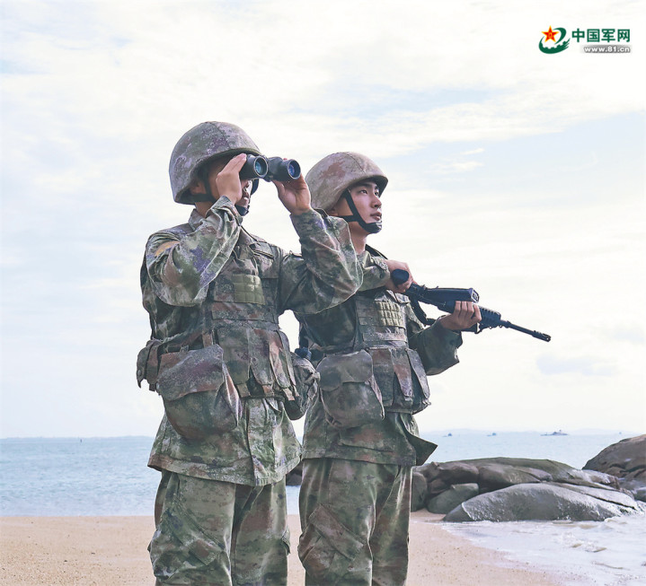 陆军某旅四连战士海岛巡缉。(茅一东摄) |
